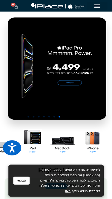 73%למה לרכוש ב- iPlace משלוחים לכל הארץ שירות לטרייד אין עד 36 תשלומים ללא ריבית שירות מעבדה ותיקון לרכישה לרכישה לרכישה לרכישה לרכישה לרכישה בחרו את ה-iPhone שלכם בחרו את ה-iPhone שלכם iPhone 16e From ₪ 2,899 לרכישה This product has multiple variants. The options may be chosen on the product page iPhone 16 Pro & […]