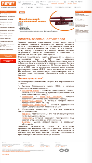95%Системы безопасности кровли (СБК) и кровельные аксессуары BORGE