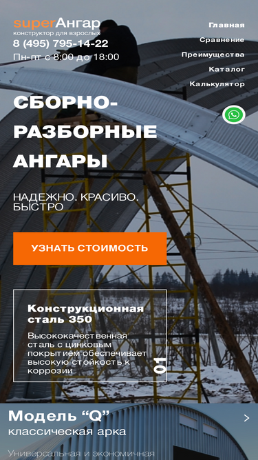 88%Заказать проектирование и строительство арочных ангаров в Москве и всей России. Качественно. Недорого. Фото и видео наших работ.