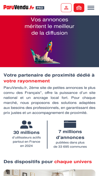 74%vous êtes un professionnel ? nos solutions sont adaptées à votre marché et élaborées spécialement pour vous. découvrez dès maintenant nos offres pour les pros sur paruvendu.fr
