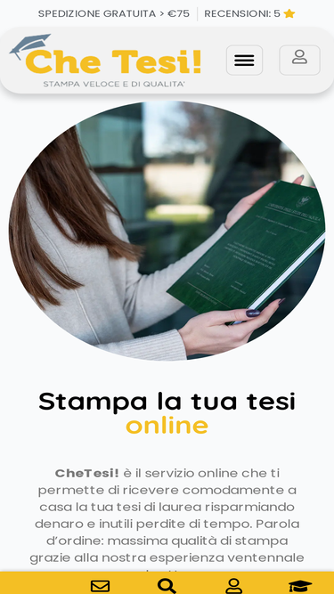 Ordina la tua tesi online in pochi minuti. Produzione interna dal 1979, copertine pregiate con incisione personalizzata, spedizione tracciata in tutta Italia o ritiro a Milano.