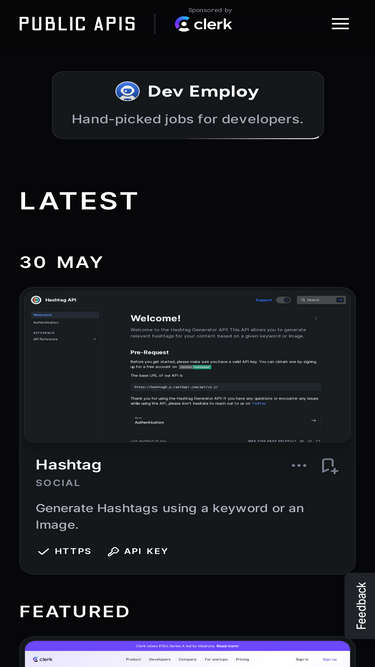 77%A collection of public APIs for developers, categorized and crowdsourced. Animals, books, cryptocurrencies, development, music, weather and much more.