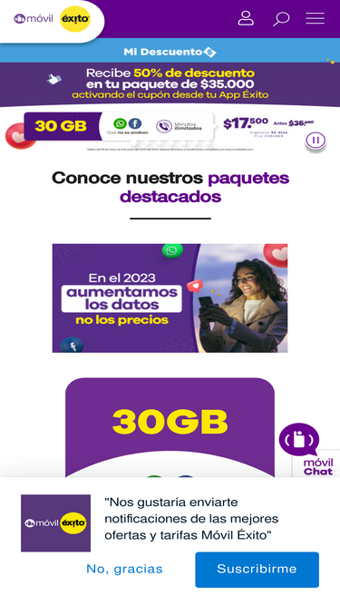 54%con móvil éxito disfruta de paquetes prepago, datos, redes sociales y miles de minutos. ¡entérate porque nos están prefiriendo!