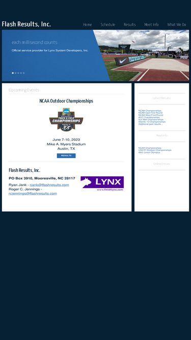 97%flash results provides high level, professional timing and results service for track and field. we are the official service provider for lynx systems developers. flash results has provided service to most major championships in the united states beginning in 1992.