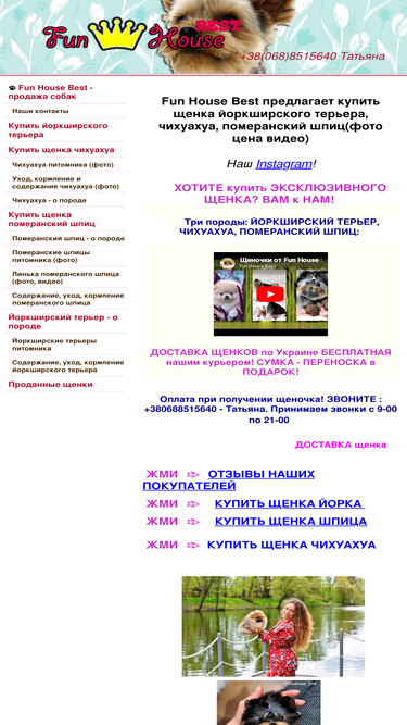 95%fun house best - предлагает купить щенков йоркширского терьера, померанского шпица, чихуахуа с доставкой по украине и зарубеж