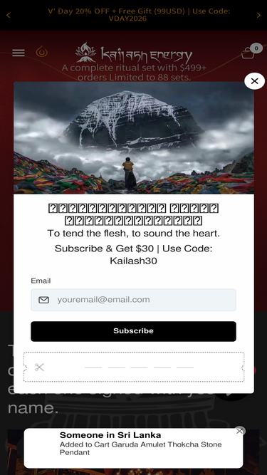 94%KAILASH ENERGY is a handcrafted jewelry brand inspired by the sacred Mount Kailash. Each piece is made with carefully sourced Himalayan materials, carrying the mountain’s energy to bring peace, balance, and spiritual connection to those who wear it.