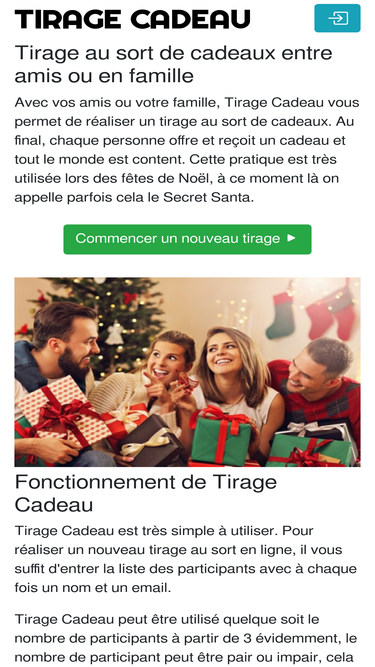 100%En famille ou entre amis, laissez le hasard décider, chaque personne offre et reçoit un cadeau. Gérez vos tirages au sort facilement et en toute sécurité