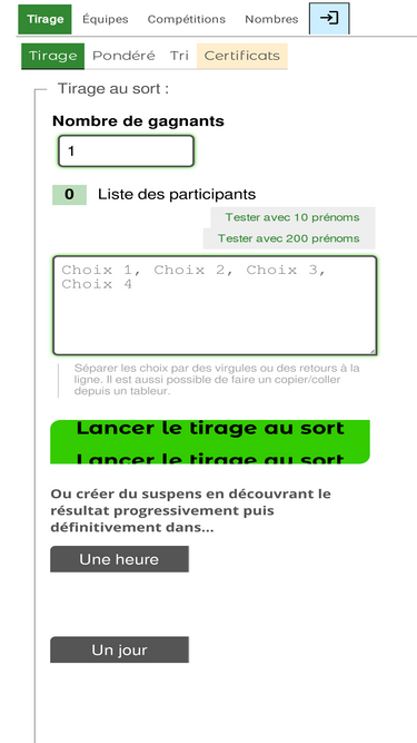 90%Générer un ou plusieurs nombres aléatoires, définissez la limite minimum et maximum ainsi que le nombre de résultats attendus. Trier les résultats ou laisser l’ordre de sortie aléatoire. Exporter vers un tableur ou un fichier texte.
