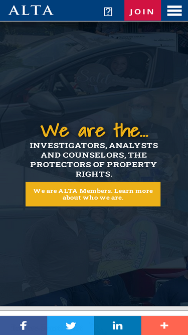 100%The American Land Title Association, founded in 1907, is the national trade association and voice of the abstract and title insurance industry. ALTA® members search, review and insure land titles to protect home buyers and mortgage lenders who invest in real estate. ALTA® is headquartered in Washington, DC.