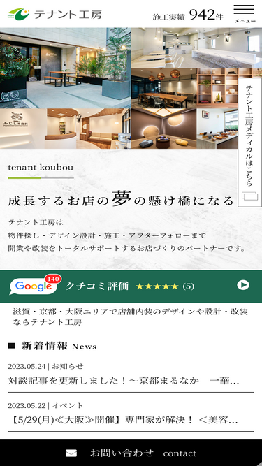 90%滋賀・京都・大阪で店舗内装デザイン・設計・改装ならテナント工房にお任せください。設計施工はもちろん、事業融資や物件探しなど事業主様をトータルサポートいたします。「安心して開業できる」とご好評を頂いております。まずは無料相談をご利用下さい。