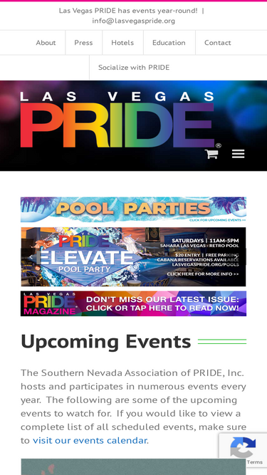 94%Upcoming Events The Southern Nevada Association of PRIDE, Inc. hosts and participates in numerous events every year. The following are some of the upcoming events to watch for. If you would like to view a complete list of all scheduled events, make sure