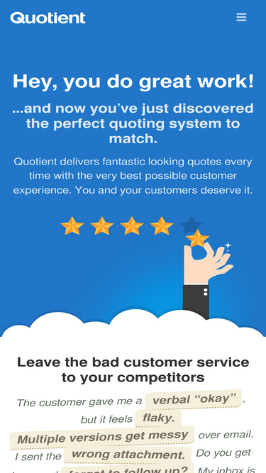 75%thousands of businesses choose quotient to deliver 5-star quotes to their customers. quotient organizes your sales process and makes you look good.