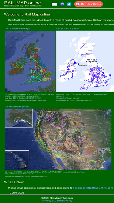 72%past and present railways, railroads, canals, waggonways, tramways, stations, metro and narrow gauge lines displayed on an interactive google map.