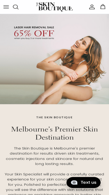 76%Shaving is a pain. Waxing is a pain. Plucking is a pain. Enter Laser Hair Removal! Not only is shaving, waxing and plucking a pain, they're also inconvenient and can damage your skin in the process. Laser Hair Removal is a safe, effective and relatively painless solution to reducing unwanted face or body hairs. After just one session, you'll see a reduction of hair by up to 80%. Book at one of our five conveniently located boutiques at the top of this page for laser hair removal in Melbourne. You will see the laser hair removal prices upon adding your treatment to your cart. What is Laser Hair Removal? The laser removal of hair involves a gentle beam of light pulsed onto the skin and absorbed by the pigment in your hair. Like how a dark shirt absorbs sunlight, the pigment in your hair also absorbs light and converts it into heat. When heated sufficiently, the stem cells that line the hair follicle are disabled and prevent the hair from ever returning. The darker and thicker the hairs are, the lighter or fairer the skin will lead to more favourable results. This is because the energy from the laser is only absorbed by the hair and not by the skin. Clients with darker skin will still experience a reduction in hair but need additional treatments to ensure their safety. Laser Hair Treatment Areas We offer a variety of treatment areas to suit the needs of men and women. Popular treatment areas include laser hair removal for the face, underarms, brazilian and bikini line as well as half legs. But the options don't stop there! We have many laser treatment options. Simply select the areas you'd like treated in the menu above, add to cart, and you're closer to smoother, softer, hair-free skin – No pain. No cuts. No irritation. No razor burn! Enjoy smooth, clear skin all year long at a price you can afford. The best laser hair removal in Melbourne is at The Skin Boutique. Laser Hair Removal - Now on SALE! Now with up to 60% off and with prices starting from as low as $14,