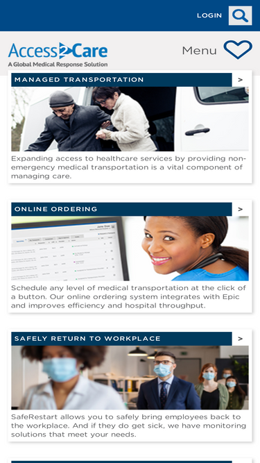 100%access2care services seamlessly integrate to help municipalities, health plans and hospital systems provide better patient care and outcomes - online medical-transport ordering, transfer center coordination, nurse navigation triage and nemt.