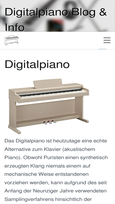 100%Digitalpiano Das Digitalpiano ist heutzutage eine echte Alternative zum Klavier (akustischem Piano). Obwohl Puristen einen synthetisch erzeugten Klang niemals einem auf mechanische Weise entstandenen vorziehen werden, kann aufgrund des seit Anfang der Neunziger Jahre verwendeten Samplingverfahrens...