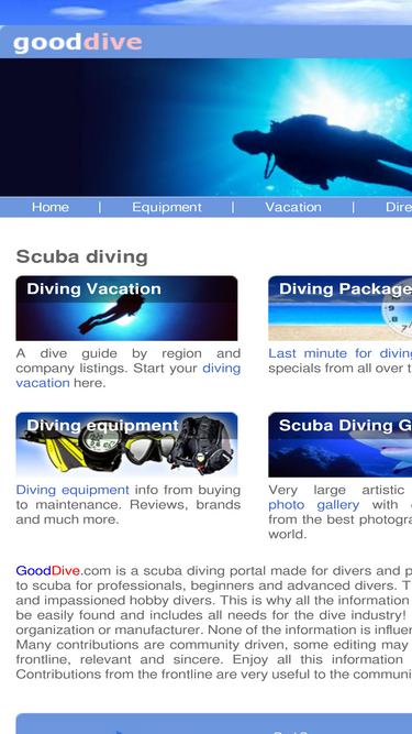 95%scuba diving resource from scuba equipment to diving photo gallery and maps incl. a worldwide directory, by far the richest source of information for divers available on the internet