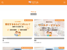 87%特徴と強み キフシルは、2021年1月より運営を開始した、NPOや公益財団法人などの寄付を集めている団体を紹介するサイトです。 運営開始から3年の月日が経ち、1年間の平均ページビューが24万程度 (20,000ページビュー/月) と寄付団体