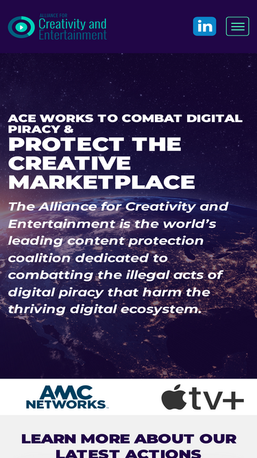 73%ACE, the Alliance for Creativity and Entertainment works to protect the creative market from illegal acts of digital piracy. Contact us.