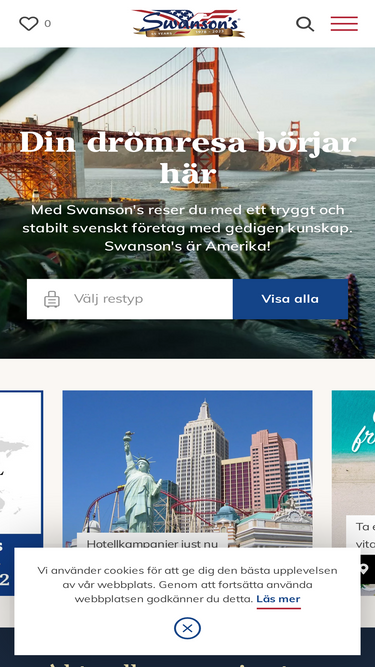 100%Specialisten på resor till USA och Kanada. Swanson's erbjuder det största programmet av resor till Amerika. Rundresor, färdiga paketresor eller helt på egen hand.