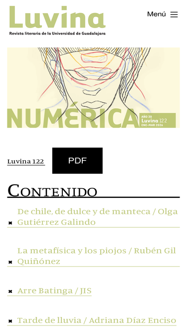 88%El programa Luvina Joven promueve, en un sentido amplio, la literacidad, es decir, el conjunto de competencias para recibir y analizar, por medio de la lectura, información, que se transforma en conocimiento gracias a la escritura. Es un proyecto constante y permanente que refuerza contenidos curriculares de la Universidad de Guadalajara y brinda prácticas de lectura y… Seguir leyendo Luvina Joven