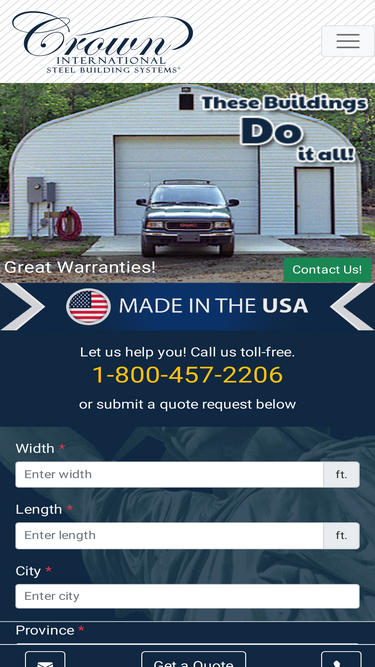 100%American Prefab Arch-Style Buildings. Easy-to-Assemble, high quality steel building kits for garages, workshops, Quonset huts. Online Quotes.