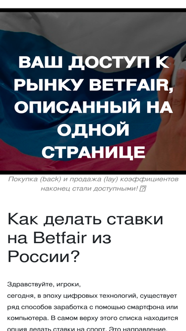 86%Betfair: ✔ Описание всех шагов для получения доступа к предложению при нахождении в России
