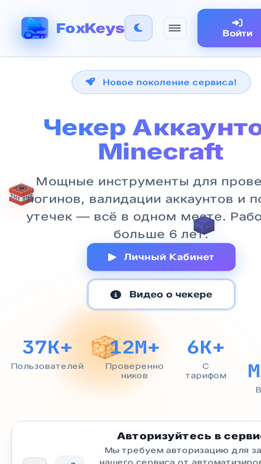 80%Хотите больше возможностей в Minecraft? FoxKeys предлагает премиум-инструменты: проверку никнеймов, аналитику серверов и удобные сервисы для игроков. Используйте их для защиты аккаунта, поиска информации и комфортной игры.