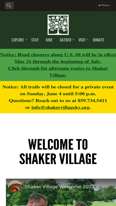 73%Media About Shaker Village Shaker Village of Pleasant Hill is a landmark destination that shares 3,000 acres of discovery in the spirit of the Kentucky Shakers. With 34 historic Shaker structures, 36 miles of trails, beautifully-conserved landscapes, seed-to-table dining, 72 hotel rooms, shopping and much more, Shaker Village offers a truly unique experience. Come learn […]
