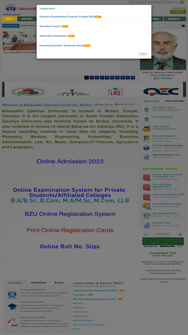 78%bahauddin zakariya university is located in multan, punjab, pakistan. it is the largest university of south punjab. bahauddin zakariya university was formerly known as multan university. it was renamed in honour of hazrat baha-ud-din zakariya (ra).