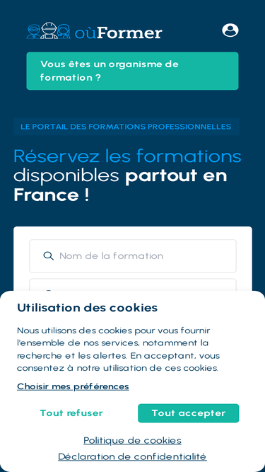 74%ouformer, c'est le seul moteur de recherche multi-centres des disponibilités de formation professionnelle. réservez pour vos équipes en sst, habilitation électrique, travail en hauteur, caces, management ou langues dans les domaines du bâtiment, des télécoms, des laboratoires ou du transport.