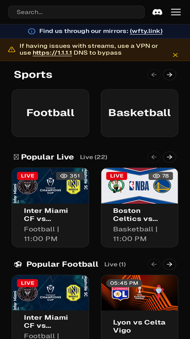100%Watch live football and sports worldwide. Free HD streams, multiple languages, and real-time scores for Premier League, Champions League, NBA, F1, Boxing, MMA, Cricket, Rugby, World Cup, Euros, Tennis and more.
