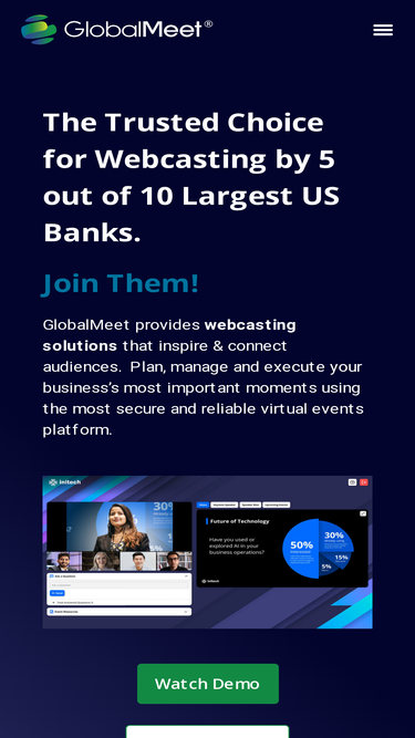 85%Plan, manage, and execute your business’s important moments using GlobalMeet, the most secure and reliable webcasting platform.