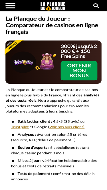 vous cherchez des informations sur les casinos en ligne, les jeux ou encore les bonus ? la planque du joueur est le site francophone dont vous avez besoin.