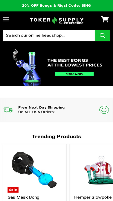 100%USA's Most Popular Online Smokeshop! Toker Supply online headshop offers FREE DISCREET SHIPPING on all orders! Shop the lowest prices on bongs, dab rigs, glass pipes, dab nails and more!