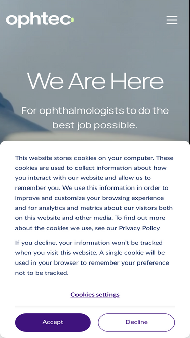 100%Welcome at Ophtec. We create outstanding intraocular products, working closely with ophthalmologists around the world. Together we make people see clearly.