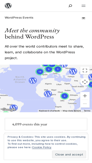 76%Find upcoming WordPress events near you and around the world. Join your local WordPress community at a meetup or WordCamp, or learn how to organize an event for your city.