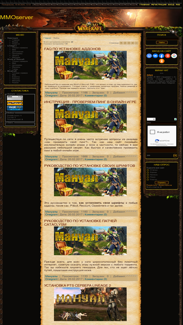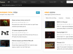 88%сайт посвящен популярной онлайн игре world of warcraft, тут можно найти гайды по классам wow (2.4.3,3.3.5a,4.3.4,5.0.4).аддоны для всех версий игры(the burning crusade,wrath of the lich king,cataclysm,mists of pandaria). новости игр tesonline, warcraft, skyrim. на сайте, существует раздел файлы, в котором можно скачать патчи для вов и патчи для скайрим.