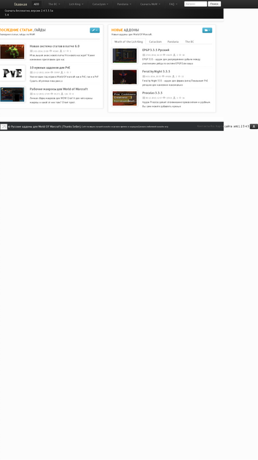 86%у нас вы можете бесплатно скачать аддоны для wow: 2.4, 3.3.5, 3.3.5a, 4.3.4, 5.4, ежедневные обновления.