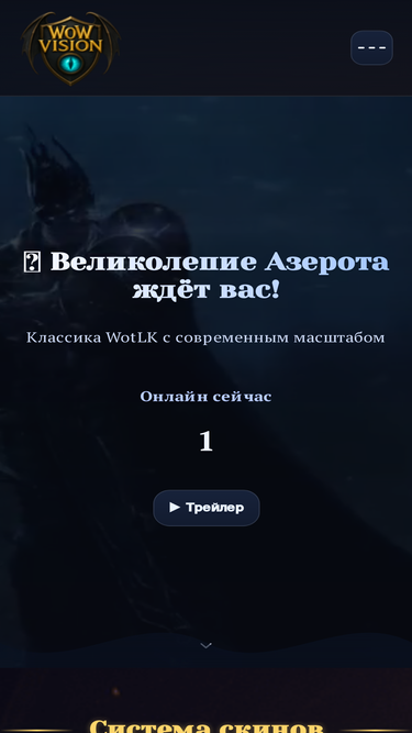 86%На сервере WoW-Vision, который представляет собой уникальную кастомную платформу на базе Wrath of the Lich King 3.3.5, стандартный интерфейс претерпел впечатляющие изменения. Разработчики сервера внедрили ряд совершенно новых, визуально привлекательных окон, которые отсутствовали в оригинальной...