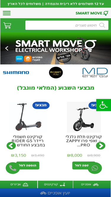 75%Smart Move TLV -חנות אופניים חשמליים בתל אביב, קורקינטים, אביזרים, מעבדת תיקונים, משלוחים מהירים וייעוץ אישי 24/7. הצטרפו לאלפי לקוחות מרוצים.