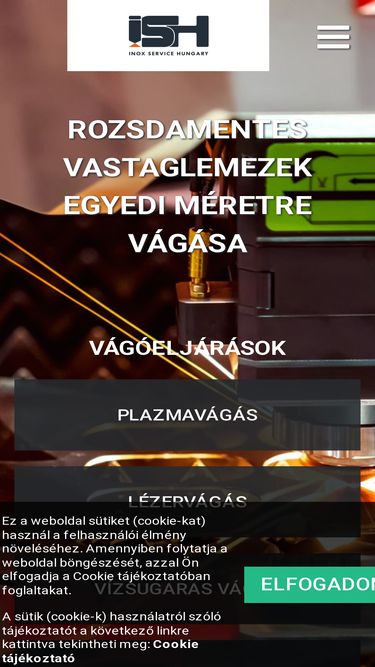 76%Cégünk fő tevékenysége a rozsdamentes és nikkel bázisú durvalemezek igény szerinti méretre vágása, darabolása. Az egyedileg gyártott félkész termékek a saját alapanyagkészleteink felhasználásával kerülnek kivágásra, a következő eljárások egyikével: plazmavágás, lézervágás, vízsugaras vágás, gépi fűrészelés.