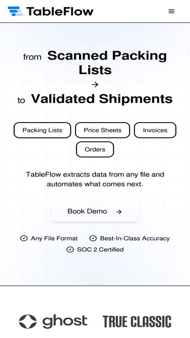 Turn messy documents into structured data with AI-powered extraction. One template handles every format — PDFs, Excel, CSV, images. Best-in-class accuracy with built-in validation.