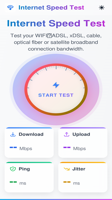 100%免费的在线网速测试工具,测量您的互联网下载速度、上传速度、Ping和抖动。