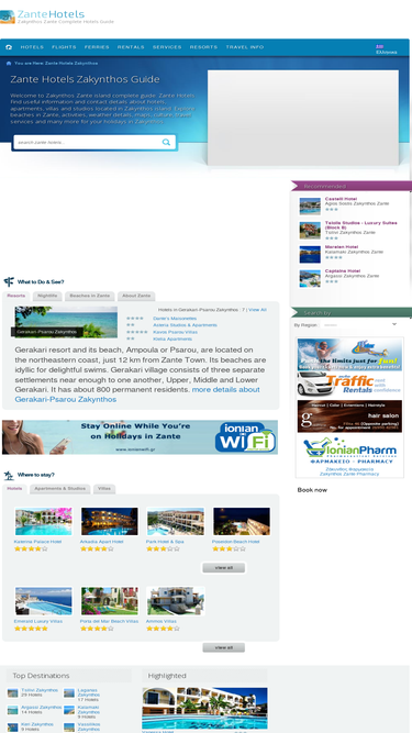 100%Zante Hotels complete guide to hotels in Zakynthos. 117 Hotels in Zante with direct contact details, info, photos, location, reviews. Book a hotel in Zante.