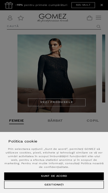 80%Noutăți de la peste 150 branduri globale ➤ Livrare gratuită de la 499 RON ➤ Returnări gratuite ➤ Program de loialitate exclusiv ➤ Intrați în lumea Gomez