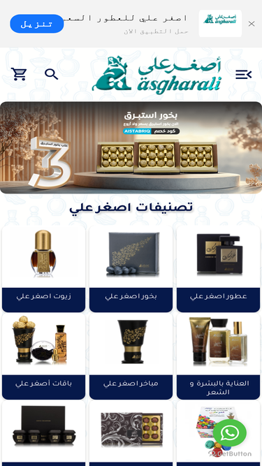 100%متجر اصغر علي للعطور والبخور موثق من وزارة التجارة تأسست العلامة عام 1924 م . نُقدم لكم منتجات أصلية 100% ، خيارك الأول للعطور و البخور و دهن العود والزيوت الطبيعية و منتجات العناية بالجسم و الشعر