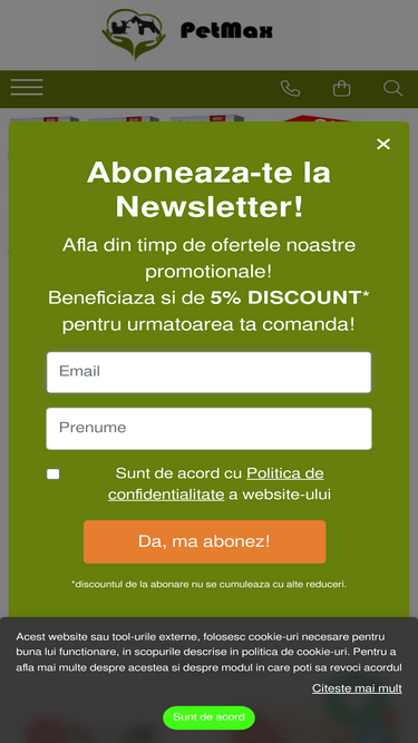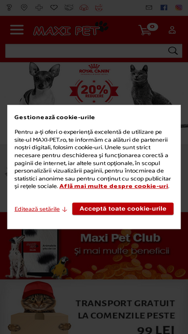 80%Comandă online, ai livrare gratuită oriunde în ţară pentru comenzile peste 149 lei. Găsești cele mai bune oferte de hrană uscată si umedă pentru animale la Maxi Pet. Comandă online.