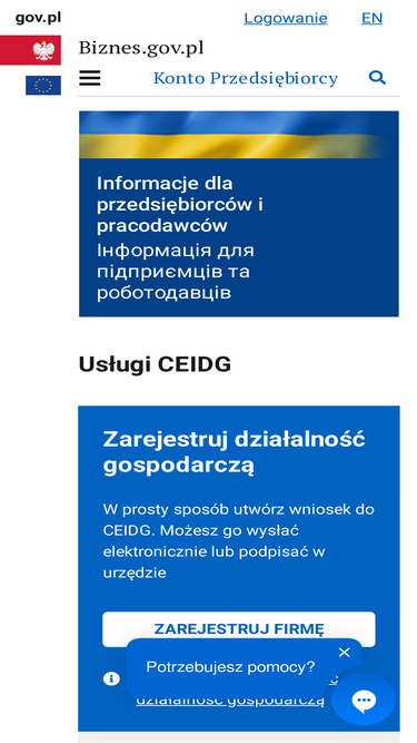 89%Logo serwisu Biznes.gov.pl z orłem RP, umieszczone na czerwonym tle
