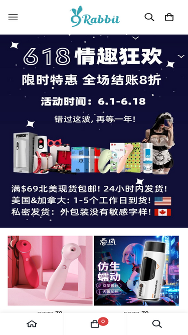 64%9Rabbit专注于打造北美华人成人情趣用品精选, 我们会从各方研究, 考核, 挑选和提供各类型高品质成人用品, 情趣用品, 震动棒, 飞机杯, 情趣内衣, 安全套, 情趣辅助用品等等. 北美情趣商城, 加拿大情趣用品, 美国成人用品.